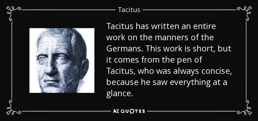 Tacitus has written an entire work on the manners of the Germans. This work is short, but it comes from the pen of Tacitus, who was always concise, because he saw everything at a glance.