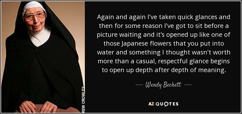 Again and again I've taken quick glances and then for some reason I've got to sit before a picture waiting and it's opened up like one of those Japanese flowers that you put into water and something I thought wasn't worth more than a casual, respectful glance begins to open up depth after depth of meaning.