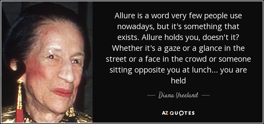 Allure is a word very few people use nowadays, but it's something that exists. Allure holds you, doesn't it? Whether it's a gaze or a glance in the street or a face in the crowd or someone sitting opposite you at lunch... you are held