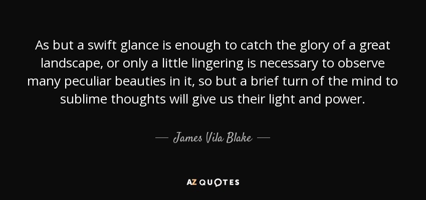 As but a swift glance is enough to catch the glory of a great landscape, or only a little lingering is necessary to observe many peculiar beauties in it, so but a brief turn of the mind to sublime thoughts will give us their light and power.