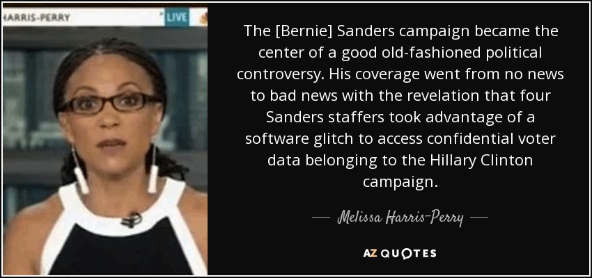 The [Bernie] Sanders campaign became the center of a good old-fashioned political controversy. His coverage went from no news to bad news with the revelation that four Sanders staffers took advantage of a software glitch to access confidential voter data belonging to the Hillary Clinton campaign.