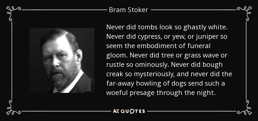 Never did tombs look so ghastly white. Never did cypress, or yew, or juniper so seem the embodiment of funeral gloom. Never did tree or grass wave or rustle so ominously. Never did bough creak so mysteriously, and never did the far-away howling of dogs send such a woeful presage through the night.