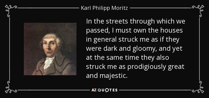In the streets through which we passed, I must own the houses in general struck me as if they were dark and gloomy, and yet at the same time they also struck me as prodigiously great and majestic.
