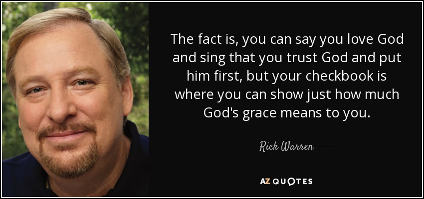 The fact is, you can say you love God and sing that you trust God and put him first, but your checkbook is where you can show just how much God's grace means to you.