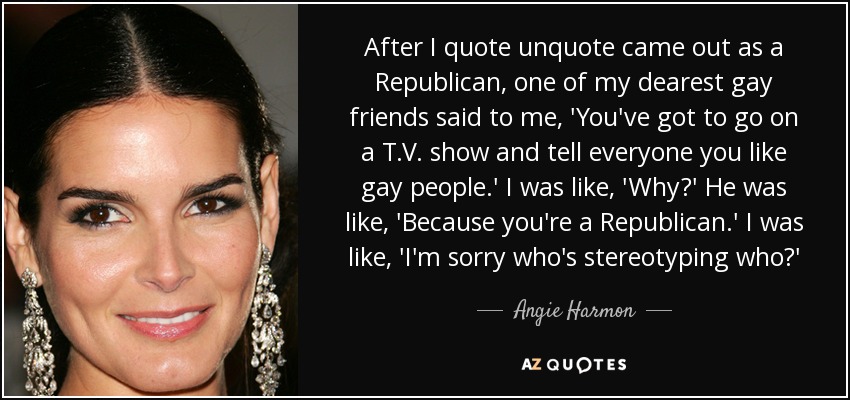 After I quote unquote came out as a Republican, one of my dearest gay friends said to me, 'You've got to go on a T.V. show and tell everyone you like gay people.' I was like, 'Why?' He was like, 'Because you're a Republican.' I was like, 'I'm sorry who's stereotyping who?'