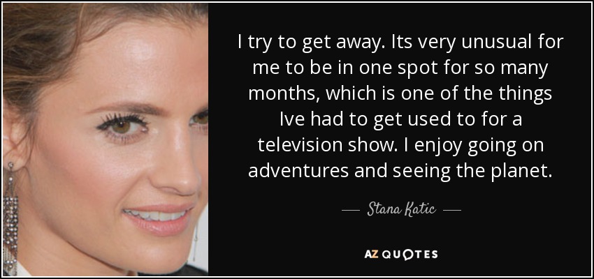 I try to get away. Its very unusual for me to be in one spot for so many months, which is one of the things Ive had to get used to for a television show. I enjoy going on adventures and seeing the planet.