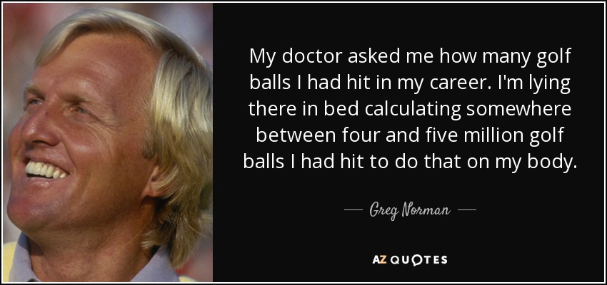 My doctor asked me how many golf balls I had hit in my career. I'm lying there in bed calculating somewhere between four and five million golf balls I had hit to do that on my body.