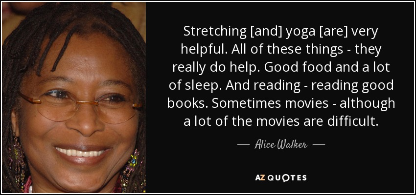 Stretching [and] yoga [are] very helpful. All of these things - they really do help. Good food and a lot of sleep. And reading - reading good books. Sometimes movies - although a lot of the movies are difficult.