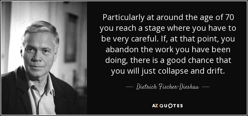 Particularly at around the age of 70 you reach a stage where you have to be very careful. If, at that point, you abandon the work you have been doing, there is a good chance that you will just collapse and drift.