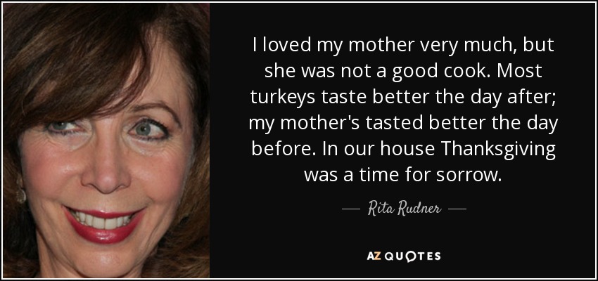I loved my mother very much, but she was not a good cook. Most turkeys taste better the day after; my mother's tasted better the day before. In our house Thanksgiving was a time for sorrow.