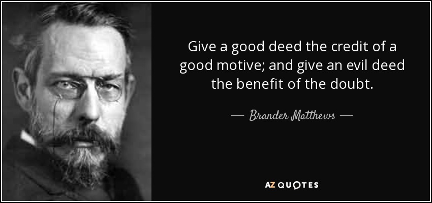 Give a good deed the credit of a good motive; and give an evil deed the benefit of the doubt.