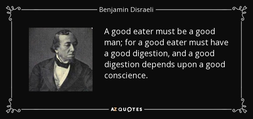 A good eater must be a good man; for a good eater must have a good digestion, and a good digestion depends upon a good conscience.