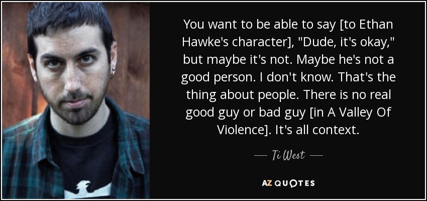 You want to be able to say [to Ethan Hawke's character], "Dude, it's okay," but maybe it's not. Maybe he's not a good person. I don't know. That's the thing about people. There is no real good guy or bad guy [in A Valley Of Violence]. It's all context.
