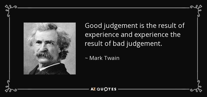 Good judgement is the result of experience and experience the result of bad judgement.