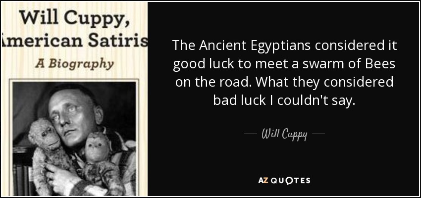 The Ancient Egyptians considered it good luck to meet a swarm of Bees on the road. What they considered bad luck I couldn't say.