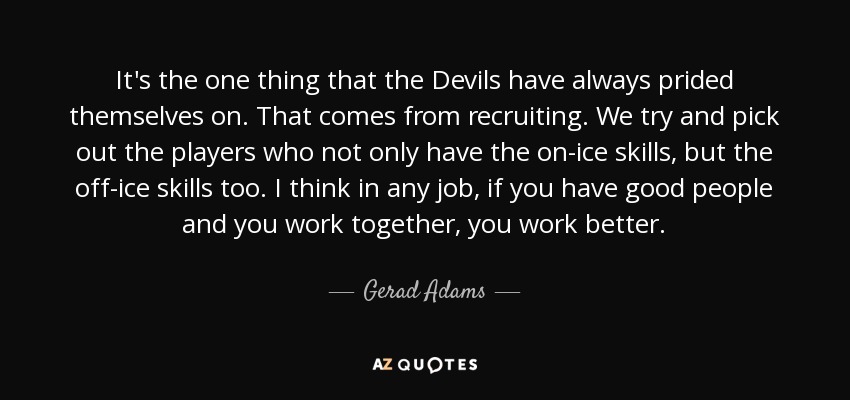 It's the one thing that the Devils have always prided themselves on. That comes from recruiting. We try and pick out the players who not only have the on-ice skills, but the off-ice skills too. I think in any job, if you have good people and you work together, you work better.