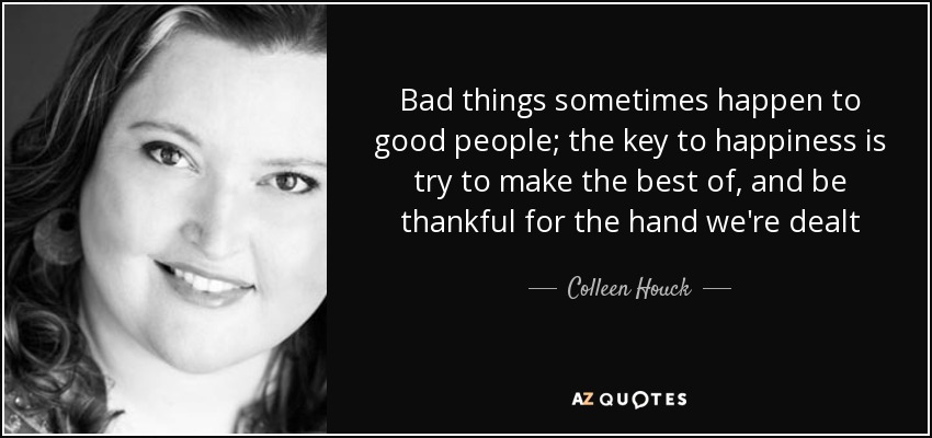 Bad things sometimes happen to good people; the key to happiness is try to make the best of, and be thankful for the hand we're dealt