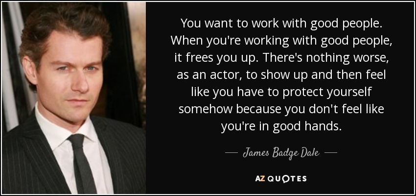 You want to work with good people. When you're working with good people, it frees you up. There's nothing worse, as an actor, to show up and then feel like you have to protect yourself somehow because you don't feel like you're in good hands.