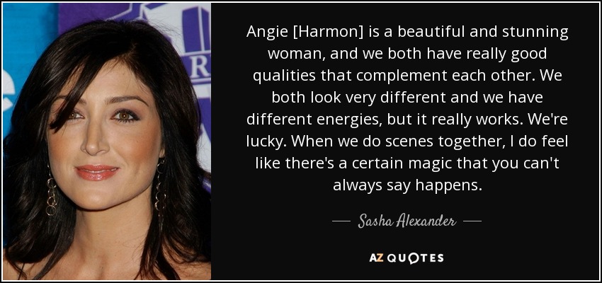 Angie [Harmon] is a beautiful and stunning woman, and we both have really good qualities that complement each other. We both look very different and we have different energies, but it really works. We're lucky. When we do scenes together, I do feel like there's a certain magic that you can't always say happens.