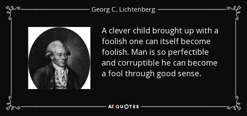 A clever child brought up with a foolish one can itself become foolish. Man is so perfectible and corruptible he can become a fool through good sense.