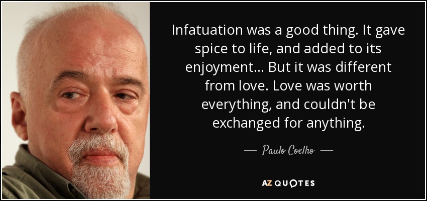 Infatuation was a good thing. It gave spice to life, and added to its enjoyment... But it was different from love. Love was worth everything, and couldn't be exchanged for anything.