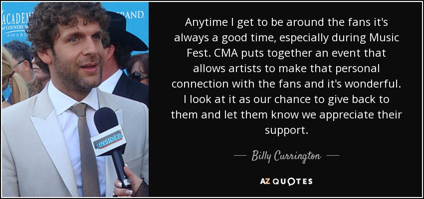 Anytime I get to be around the fans it's always a good time, especially during Music Fest. CMA puts together an event that allows artists to make that personal connection with the fans and it's wonderful. I look at it as our chance to give back to them and let them know we appreciate their support.
