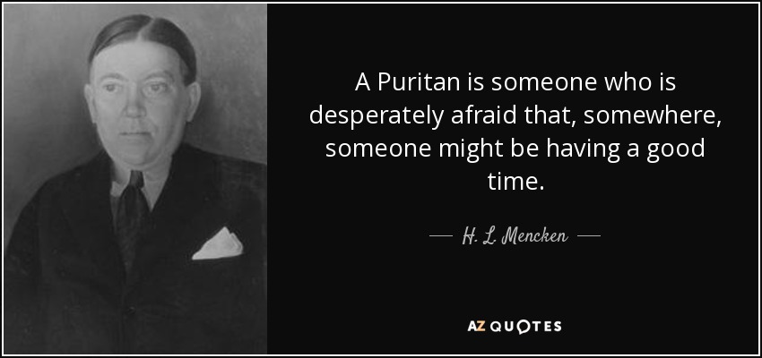 A Puritan is someone who is desperately afraid that, somewhere, someone might be having a good time.