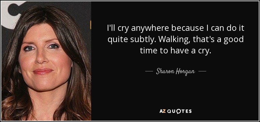 I'll cry anywhere because I can do it quite subtly. Walking, that's a good time to have a cry.