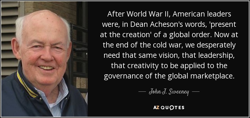 After World War II, American leaders were, in Dean Acheson's words, 'present at the creation' of a global order. Now at the end of the cold war, we desperately need that same vision, that leadership, that creativity to be applied to the governance of the global marketplace.