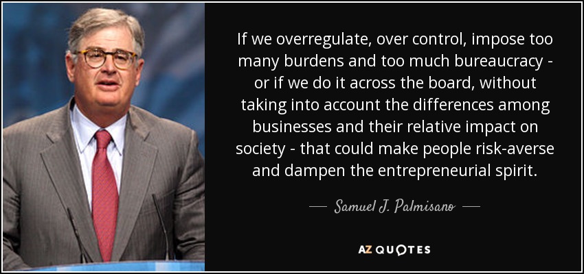 If we overregulate, over control, impose too many burdens and too much bureaucracy - or if we do it across the board, without taking into account the differences among businesses and their relative impact on society - that could make people risk-averse and dampen the entrepreneurial spirit.