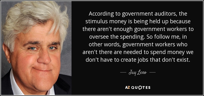 According to government auditors, the stimulus money is being held up because there aren't enough government workers to oversee the spending. So follow me, in other words, government workers who aren't there are needed to spend money we don't have to create jobs that don't exist.