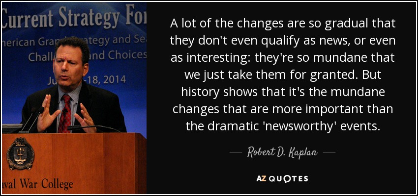A lot of the changes are so gradual that they don't even qualify as news, or even as interesting: they're so mundane that we just take them for granted. But history shows that it's the mundane changes that are more important than the dramatic 'newsworthy' events.