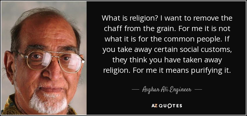 What is religion? I want to remove the chaff from the grain. For me it is not what it is for the common people. If you take away certain social customs, they think you have taken away religion. For me it means purifying it.