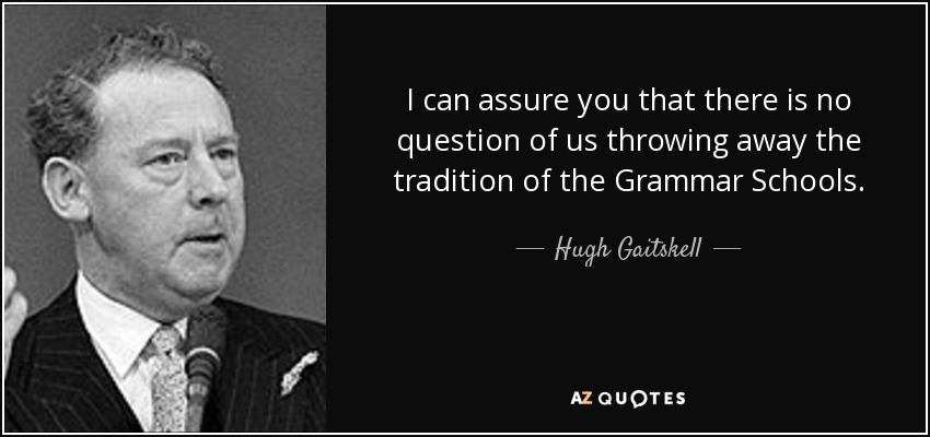 I can assure you that there is no question of us throwing away the tradition of the Grammar Schools.