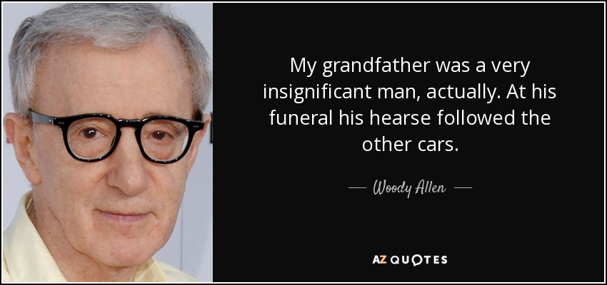 My grandfather was a very insignificant man, actually. At his funeral his hearse followed the other cars.