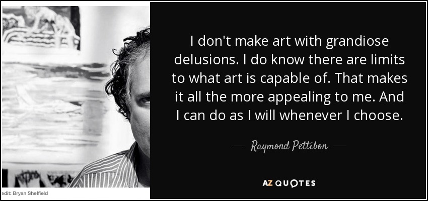 I don't make art with grandiose delusions. I do know there are limits to what art is capable of. That makes it all the more appealing to me. And I can do as I will whenever I choose.
