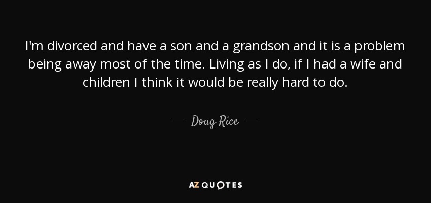 I'm divorced and have a son and a grandson and it is a problem being away most of the time. Living as I do, if I had a wife and children I think it would be really hard to do.