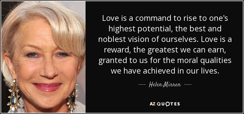 Love is a command to rise to one's highest potential, the best and noblest vision of ourselves. Love is a reward, the greatest we can earn, granted to us for the moral qualities we have achieved in our lives.
