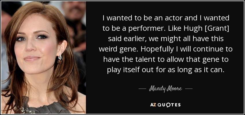 I wanted to be an actor and I wanted to be a performer. Like Hugh [Grant] said earlier, we might all have this weird gene. Hopefully I will continue to have the talent to allow that gene to play itself out for as long as it can.