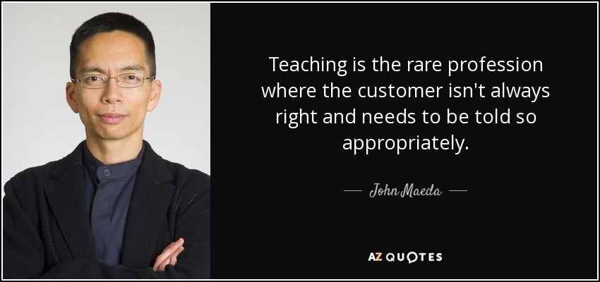 Teaching is the rare profession where the customer isn't always right and needs to be told so appropriately.