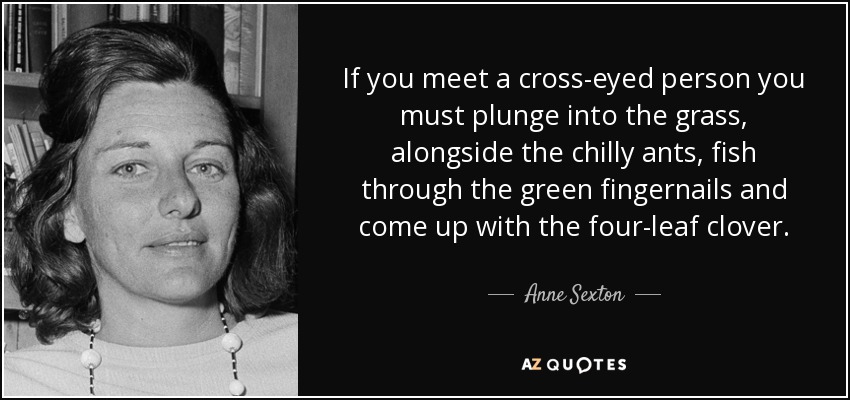If you meet a cross-eyed person you must plunge into the grass, alongside the chilly ants, fish through the green fingernails and come up with the four-leaf clover.
