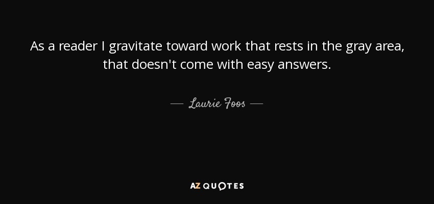As a reader I gravitate toward work that rests in the gray area, that doesn't come with easy answers.
