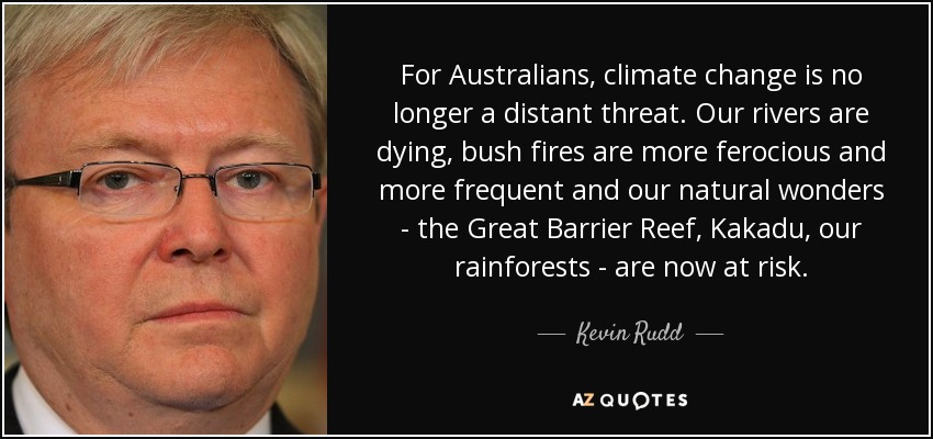 For Australians, climate change is no longer a distant threat. Our rivers are dying, bush fires are more ferocious and more frequent and our natural wonders - the Great Barrier Reef, Kakadu, our rainforests - are now at risk.