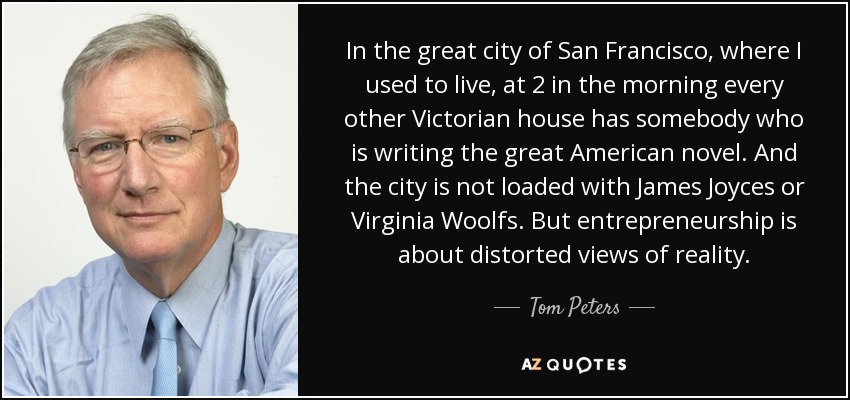 In the great city of San Francisco, where I used to live, at 2 in the morning every other Victorian house has somebody who is writing the great American novel. And the city is not loaded with James Joyces or Virginia Woolfs. But entrepreneurship is about distorted views of reality.