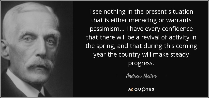 I see nothing in the present situation that is either menacing or warrants pessimism... I have every confidence that there will be a revival of activity in the spring, and that during this coming year the country will make steady progress.