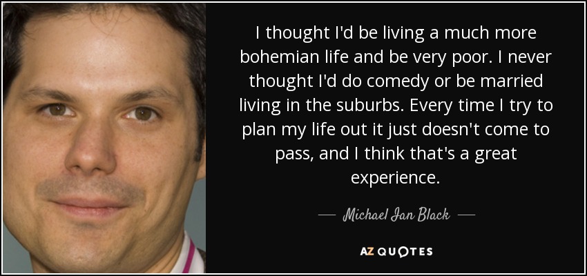 I thought I'd be living a much more bohemian life and be very poor. I never thought I'd do comedy or be married living in the suburbs. Every time I try to plan my life out it just doesn't come to pass, and I think that's a great experience.