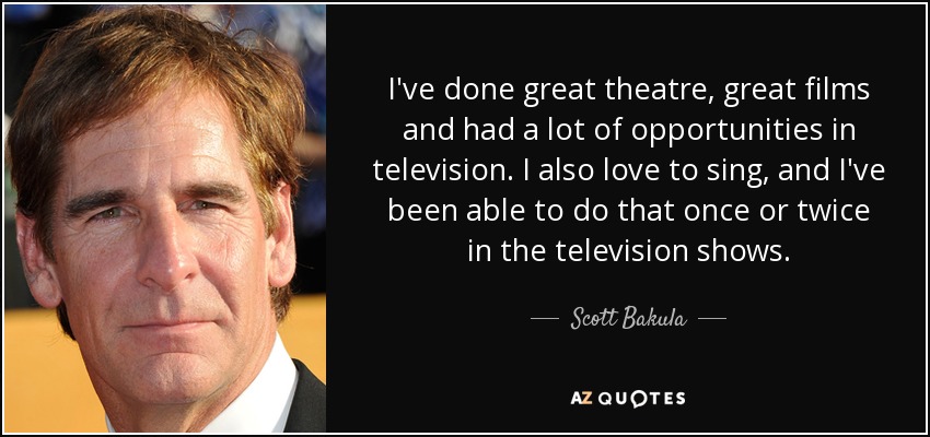 I've done great theatre, great films and had a lot of opportunities in television. I also love to sing, and I've been able to do that once or twice in the television shows.