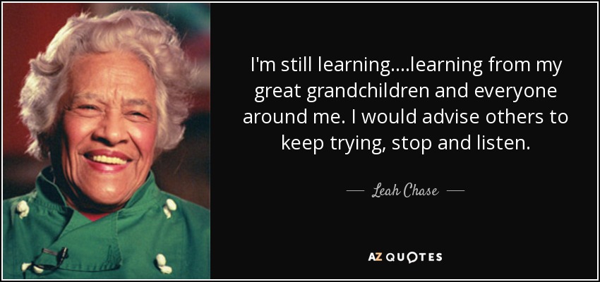 I'm still learning....learning from my great grandchildren and everyone around me. I would advise others to keep trying, stop and listen.