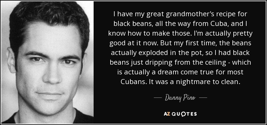 I have my great grandmother's recipe for black beans, all the way from Cuba, and I know how to make those. I'm actually pretty good at it now. But my first time, the beans actually exploded in the pot, so I had black beans just dripping from the ceiling - which is actually a dream come true for most Cubans. It was a nightmare to clean.