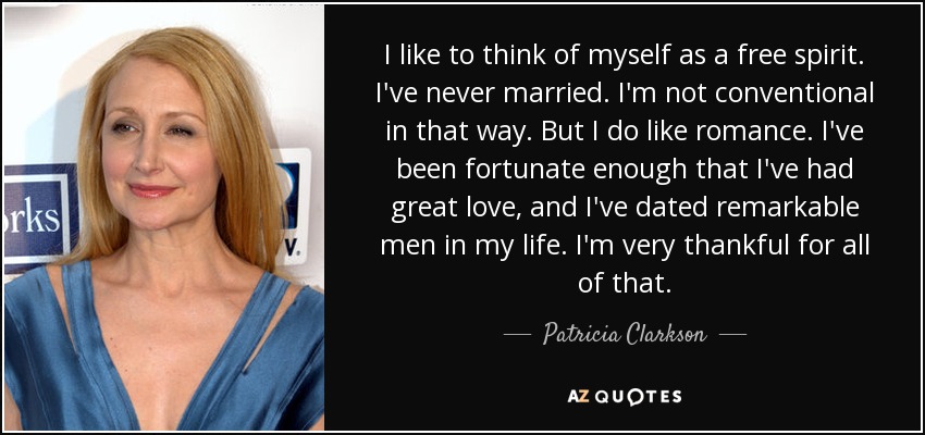 I like to think of myself as a free spirit. I've never married. I'm not conventional in that way. But I do like romance. I've been fortunate enough that I've had great love, and I've dated remarkable men in my life. I'm very thankful for all of that.